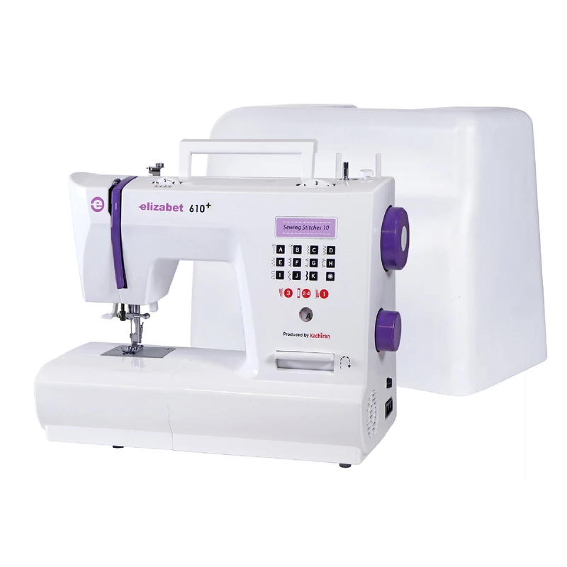 امکانات چرخ خیاطی : سوزن نخ کن خودکار و سیستم نخ قطع کن خودکار و بازوی آزاد و اهرم فشار پایه