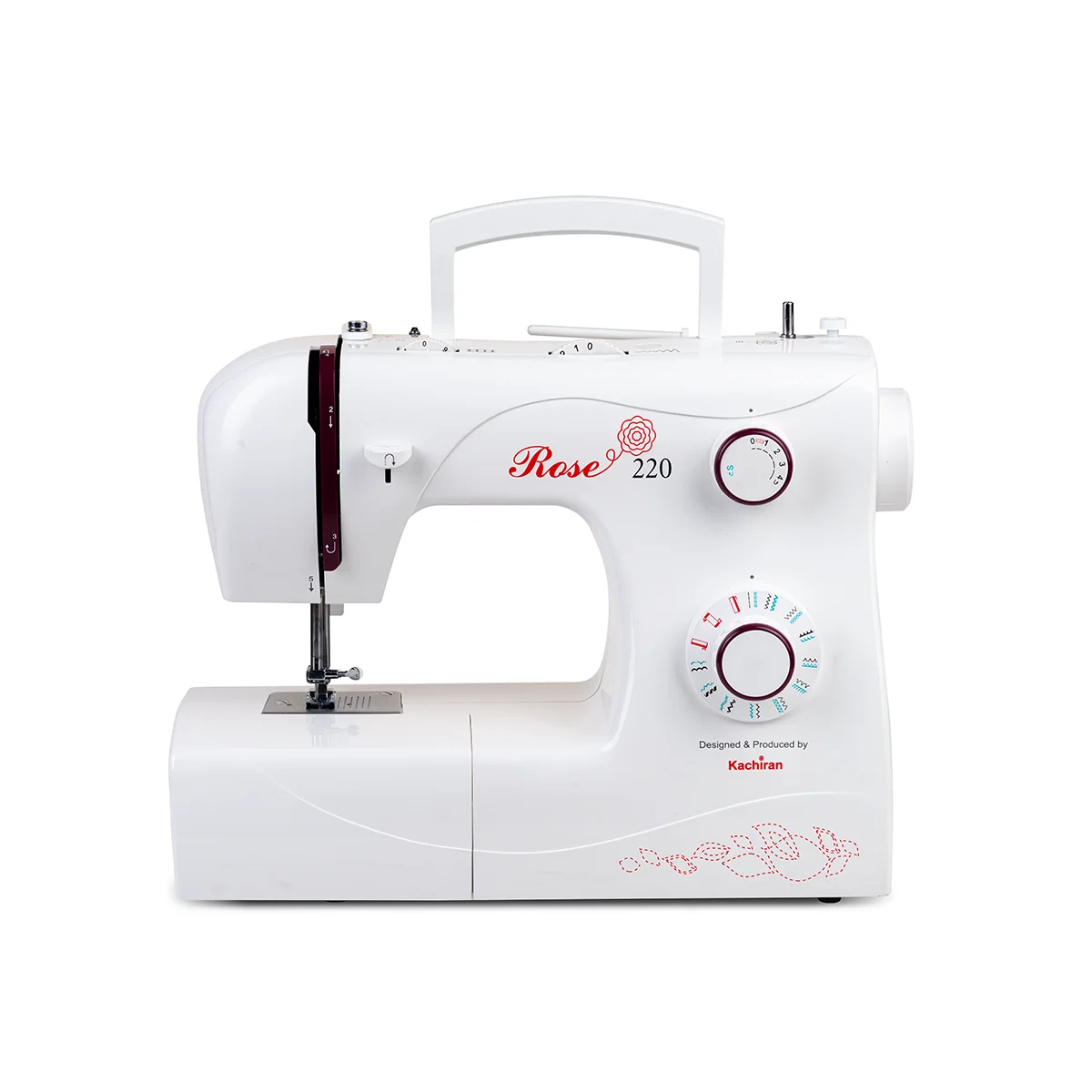 اقلام همراه : پدال ، پایه دوخت استاندارد ، صفحه گلدوزی، پایه جادکمه، پایه زیپ دوزی ، بشکاف ، برس تمیزکاری ، یک بسته سوزن حاوی چند