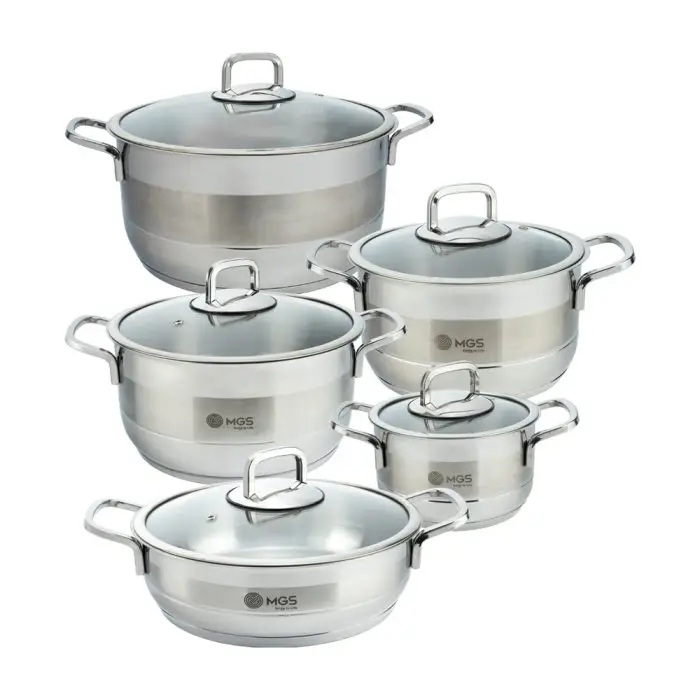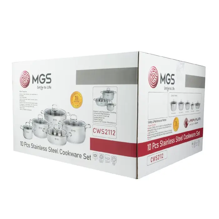 سرویس شامل : ۴ عدد قابلمه به سایز های ۱۶ ، ۲۰ ، ۲۴ و ۲۸ همراه با درب و یک عدد تابه دو دسته به سایز ۲۴ همراه با درب