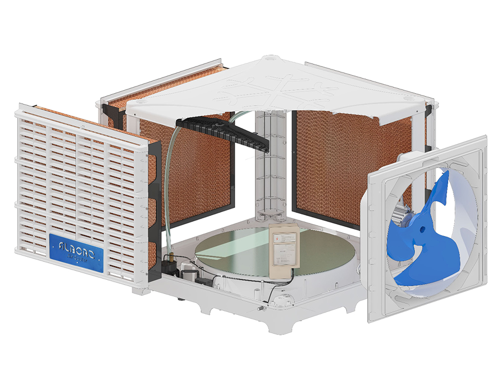 شبکه های دربرگیرنده پد سلولز در چهار طرف کولر (حداقل ۴۵ درصد افزایش خنکی)